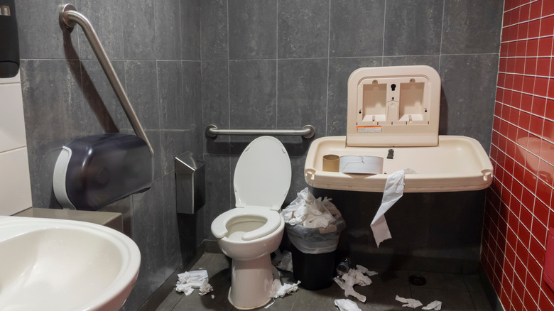 Besides being a good indication that the back-of-house standards aren't up to code, unclean restrooms are the perfect breeding ground for harmful bacteria. It's worth mentioning that restrooms in busy venues can get filthy quickly, and sometimes staff aren't aware of a recent mess. Inspect the back of the restroom door, as many businesses will have a sign-off sheet that proves employees are making regular checks. Even if a restroom is spotless, it might be missing essential items. Without sufficiently hot water or antibacterial hand soap, it's impossible to clean your hands properly once you've done your business. There should also be waste disposal bins on hand, as well as discreet sanitary bins for feminine hygiene products.